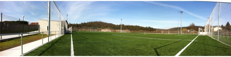 Campo de fútbol municipal de herba sintética, cunhas medidas de 104x59,50m dispón de 4 vestiarios colectivos e está destinado á práctica de fútbol e fútbol 7.(medidas F7: 59,50x40m)