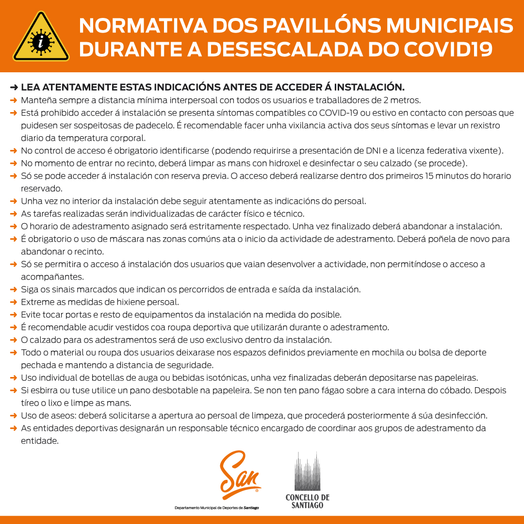 Compartimos convosco as normas de uso dos pillons deportivos municipais durante a desescalada do coronavirus Covid-19. É moi importante lelas con atención: