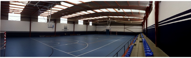 Pavillón municipal con pista de xogo sintética, cunhas medidas de 40x20m. dispón de 4 vestiarios colectivos e está destinado á práctica de minibasket, fútbol sala e voleibol.